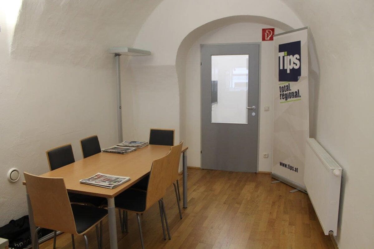 Das Tips Büro, das weit nach hinten reicht und in einem Garten endet, ist sehr offen gestaltet. In vier Arbeitsräumen, die durch Glastüren getrennt sind, aber ineinander verlaufen, befinden sich die Abteilungen Verkauf, Sekretariat, Redaktion und Grafik. Eine kleine Küche, ein Aufenthaltsraum, zwei WCs und ein Garten ergänzen die Büroräume. Ein zweiter Eingang in das Tips Büro (Redaktionsbereich) ist barrierefrei gestaltet. Der Aufenthaltsraum mitten im Büro, abtrennbar durch Glastüren, eignet sich auf für Interviews, Besprechungen oder gemütliche, gemeinsame Mittagessen. Der Garten ist im Sommer ein beliebter Treffpunkt in den Pausen.